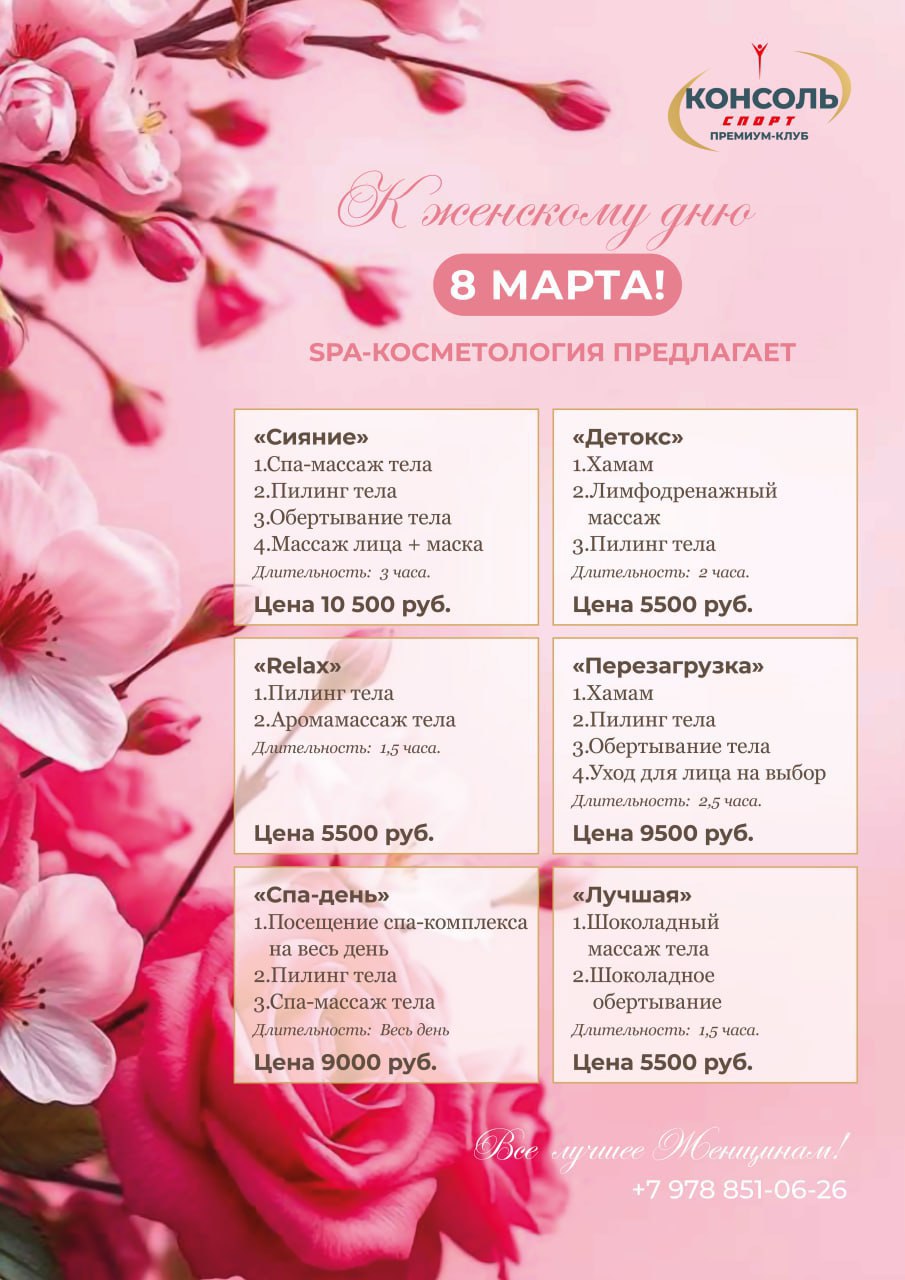 - Специальные SPA-программы для отдыха и восстановления